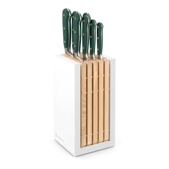 - Praktický zelený blok – bezpečné uložení nožů a stylový doplněk do každé kuchyně.