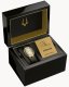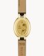 Hodinky kombinují elegantní oválný pouzdro z pozlacené nerezové oceli s charakteristickým halo Rubaiyat, které dodává na dynamické přítomnosti na zápěstí. Korunka na pozici 12 je osazena modrým syntetickým spinelovým kabošonem a zakřivené safírové sklíčko zajišťuje dokonalou čitelnost.