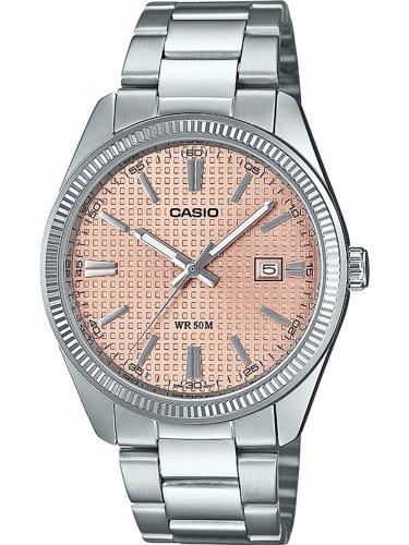 4549526382550Pánské hodinky Casio MTP-1302PE-4AVEF s růžově zlatým ciferníkem a stříbrným ocelovým řemínkem. Precizní quartz strojek, datum a vodotěsnost 50M. Elegantní design vhodný pro společenské příležitosti. Více