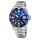 Design hodinek je výrazně sportovní, ale zároveň elegantní díky kombinaci černého ciferníku s výraznými indexy a stříbrným ocelovým řemínkem širokým 20 mm. Pouzdro o průměru 41 mm a výšce 12,65 mm skvěle sedí na zápěstí o obvodu 16 až 21 cm. Motýlová překlápěcí spona zajišťuje pohodlné a bezpečné nošení během celého dne.