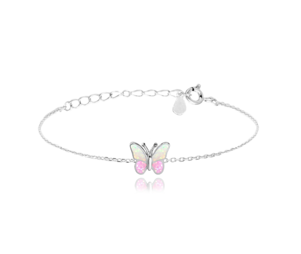 8596300057858Jemný dětský stříbrný náramek MINET s motýlkem a růžovým syntetickým opálem. Rhodiovaná povrchová úprava zajišťuje dlouhotrvající lesk a kvalitní stříbro Ag 925 garantuje krásu i odolnost. Perfektní dárek pro malé parádnice. Více