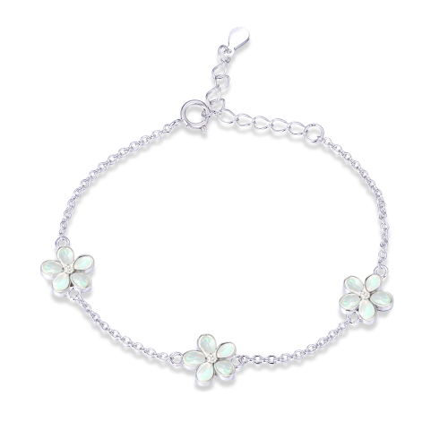 MINET Stříbrný náramek KYTIČKY s bílými opálky JMAD0043WB14
