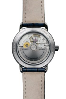 Černý kožený řemínek široký 18 mm s ocelovou stříbrnou přezkou perfektně doplňuje vzhled hodinek a pohodlně sedí na zápěstí o obvodu 12 až 17 cm. Výška pouzdra 11 mm dodává hodinkám jemnost a pohodlí při nošení.