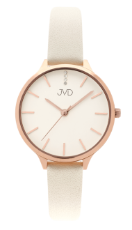 8592818146770Stylové dámské hodinky JVD JZ201.5 s béžovým ciferníkem a koženým řemínkem. Precizní Miyota strojek, minerální sklo a zirkonové detaily dodávají eleganci. Vodotěsnost 30M a klasický design pro každodenní i slavnostní nošení. Více