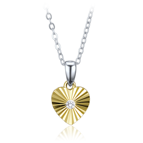 MINET Decentní pozlacený stříbrný náhrdelník srdce se zirkonem JMAS0325GN45