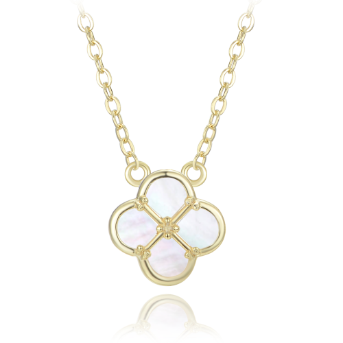 MINET JMAS7058YN47 Pozlacený stříbrný náhrdelník čtyřlístek s bílou perletí