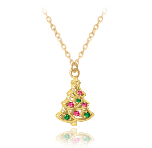 MINET Vánoční pozlacený stříbrný náhrdelník CHRISTMAS TREE JMAS8044GN42