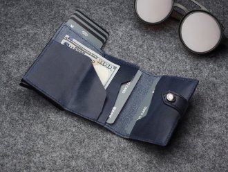 5907542697772Malá modrá kožená peněženka Pularys s unikátním vnitřkem a RFID ochranou. Nabízí bezpečné uložení karet, bankovek a dokladů díky chytrému vysouvacímu mechanismu. Ideální pro ty, kteří chtějí styl i praktičnost v jednom. Více