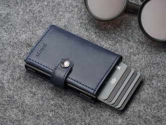 Dvě snadno přístupné kapsy dokonale uspořádají dokumenty, karty nebo vizitky. Další funkcí je jedinečná přihrádka na bankovky, která je celá vyrobená z kůže. Díky technologii blokování RFID použité v konstrukci peněženky jsou vaše citlivé údaje a finanční prostředky na kreditních kartách v naprostém bezpečí a chráněny před neoprávněným čtením nebo krádeží. Speciální mechanismus postupného vysouvání karet vám umožní rychle sáhnout po té, kterou hledáte.